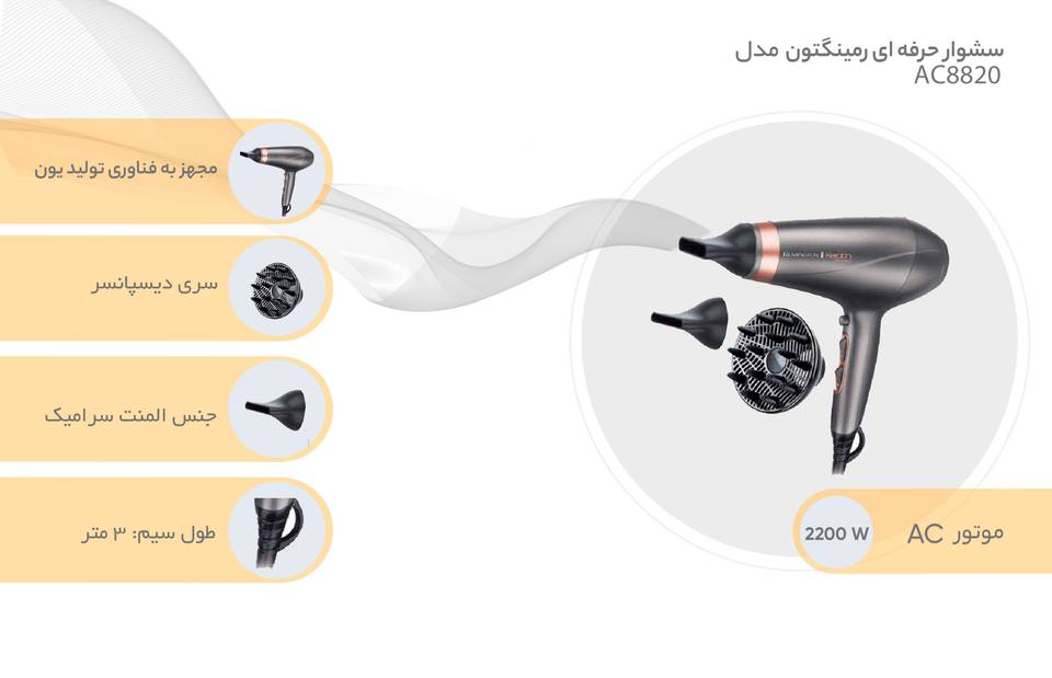 مزایای فناوری تولید یون در سشوار حرفه ای رمینگتون مدل AC8820